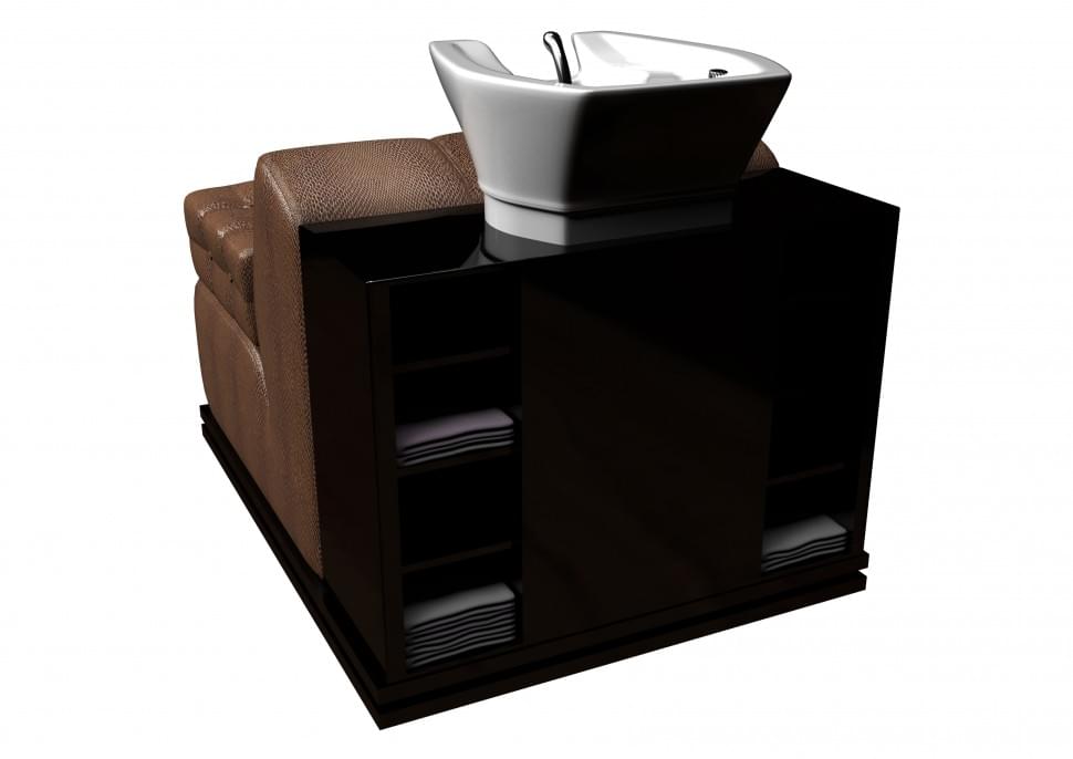Каркас мойки изготавливается из дерева и оснащается удобными полками для хранения. Мойка имеет люфт наклон, благодаря чему отличается повышенной комфортабельностью в процессе использования. Также для обеспечения функциональности мойка оснащается смесителем и хромированной лейкой душа. По желанию парикмахерская мойка MONALISA может быть изготовлена в различных цветовых вариациях.