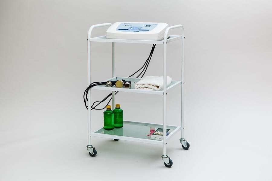 Тележка для косметолога с сеткой - необходимая вещь в салоне красоты.При использовании аппаратуры открытые боковины позволяют легко подключать провода. За счет активного воздухообмена происходит быстрое и естественное охлаждение нагревающихся деталей и поверхностей аппаратуры. Верхняя полка снабжена изящными ограничителями. Два удобных ящика полного открывания на шариковых направляющих позволят мастеру без труда убирать необходимые для работы аксессуары. Для удобства уборки и перемещения столик изготавливается на колесиках.
